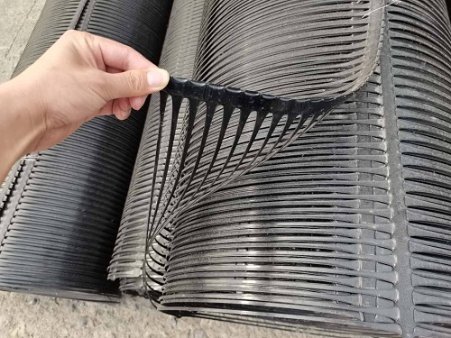 单向拉伸塑料土工格栅,是由高分子聚合物经挤出,然后再纵向拉伸而成,这样形成的具有整体性且分布均匀的椭圆形网结构,具有相当高的拉伸强度和拉伸模量,这种结构的土工格栅给土壤提供了理想的连锁系统,该产品拉伸强度大(>150Mpa)适于各型土壤及各项性能指标都优于未经拉伸的土工网,是目前一种理想的加筋加固材料。